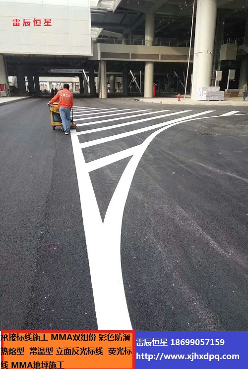 5、標(biāo)線涂敷采用劃線機(jī)施工。涂料溶好后,將之放入劃線機(jī)內(nèi)準(zhǔn)備劃線。劃線前應(yīng)調(diào)整劃線機(jī)漏斗的流速來保證涂敷厚度,使標(biāo)線厚度達(dá)到設(shè)計(jì)要求。