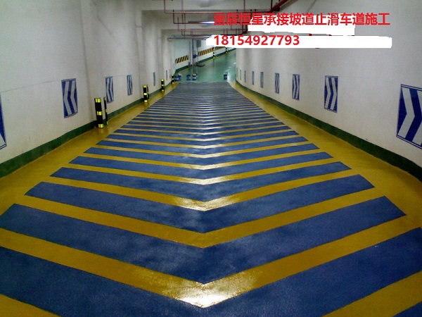 防滑車道又稱無震動止滑車道、停車場防滑坡道、暴砂防滑地面、止滑型坡道、停車場防滑地坪漆等。專門用于各類停車場上、下坡道場所。防滑車道材料一種雙組份、反應(yīng)硬化性材料,主要成分由是改性樹脂和C料組成,含有多 角性硬度極高的骨材,利用巨大比表面積,達到防滑效果
