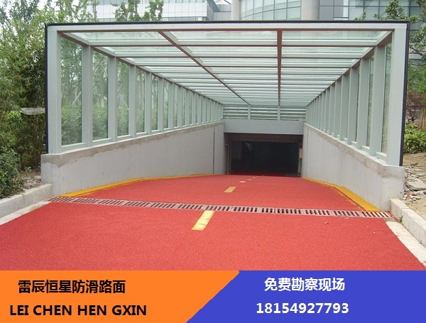彩色防滑路面通過道路顏色的不同,提示駕駛者在規(guī)定的路面上行駛,從而避免了不同車輛的混行;提示駕駛?cè)藛T前方的危險(xiǎn)路段,并通過提供高摩擦力的面層來實(shí)現(xiàn)很好防滑效果;駕駛員駛?cè)肷鲜雎范慰梢蕴崆敖档退俣?,并在緊急情況下,縮短剎車距離,避免惡性交通事故。彩色路面防滑系統(tǒng)是一種樹脂基路面防滑系統(tǒng),包括特殊配方的樹脂基黏合劑和各種不同規(guī)格的骨料,以準(zhǔn)確的數(shù)量涂敷于各種路面。此種路面不僅對景觀美化和道路安全方面有著明顯的改進(jìn),同時(shí)因其面層耐磨耗,可以對普通路面起到延長壽命的作用。彩色防滑路面的引入,對改善我國交通惡化的現(xiàn)狀,有著積極深遠(yuǎn)的意義。